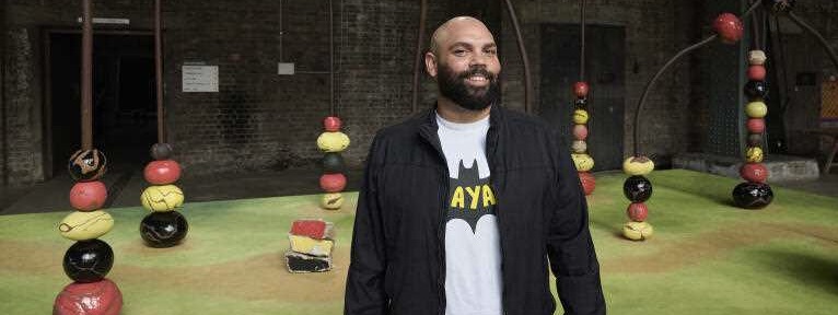 At the cavernous defunct White Bay Power Station, Dennis Golding, 36, has built a massive bead maze installation using the colours of the Aboriginal flag: red, black and yellow.