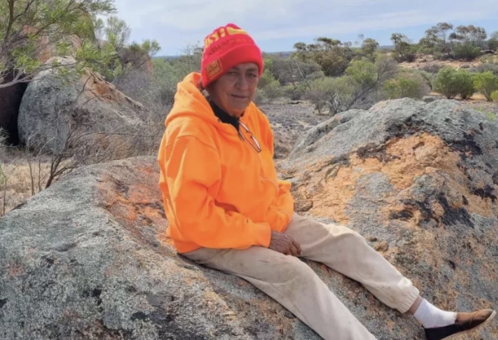 Aunty Sue Haseldine of the Kokatha nation, travelled from Ceduna to Adelaide recently to protest about the launch by Southern Launch in the gar west of the State.