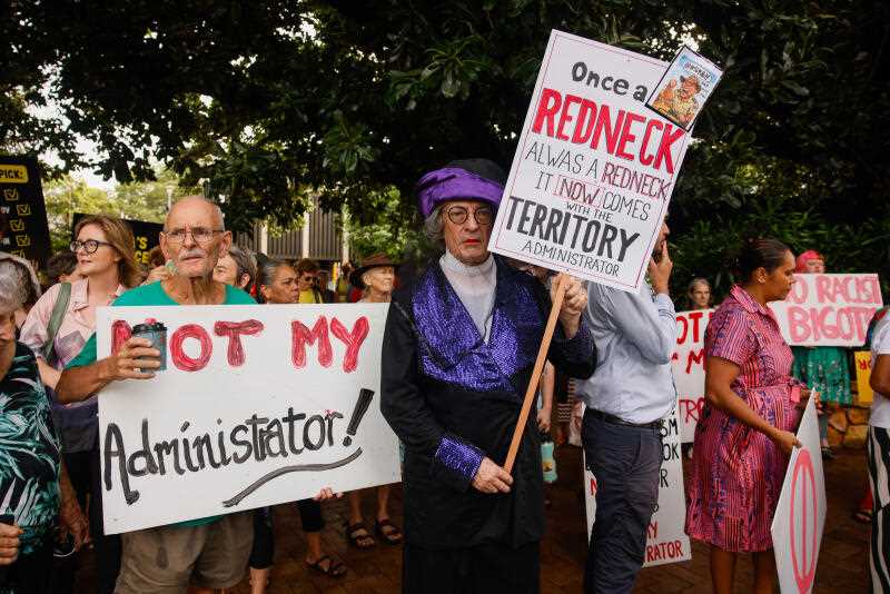 She also banned Friday’s planned protest outside the NT parliament but the rally went ahead, attended by Indigenous Australians Minister Malarndirri McCarthy and NT Opposition Leader Selena Uibo.