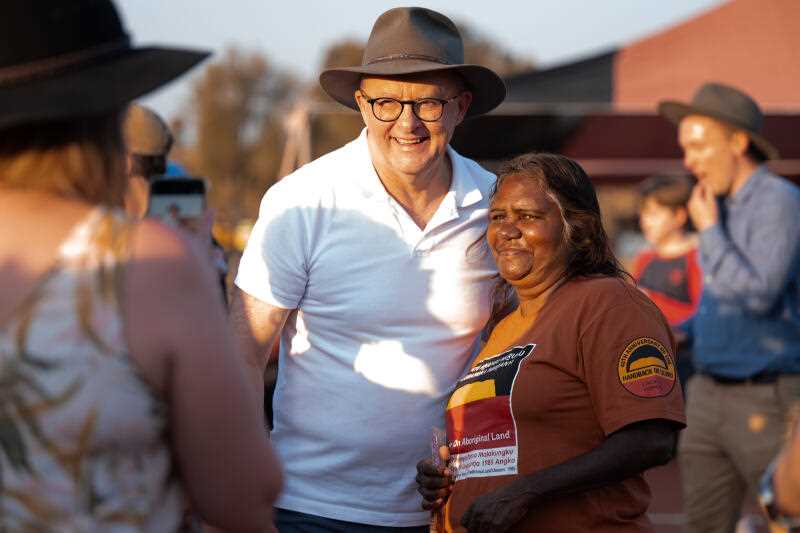 Anthony Albanese at the Uluru handback 40th anniversary event. (Lloyd Jones/AAP)