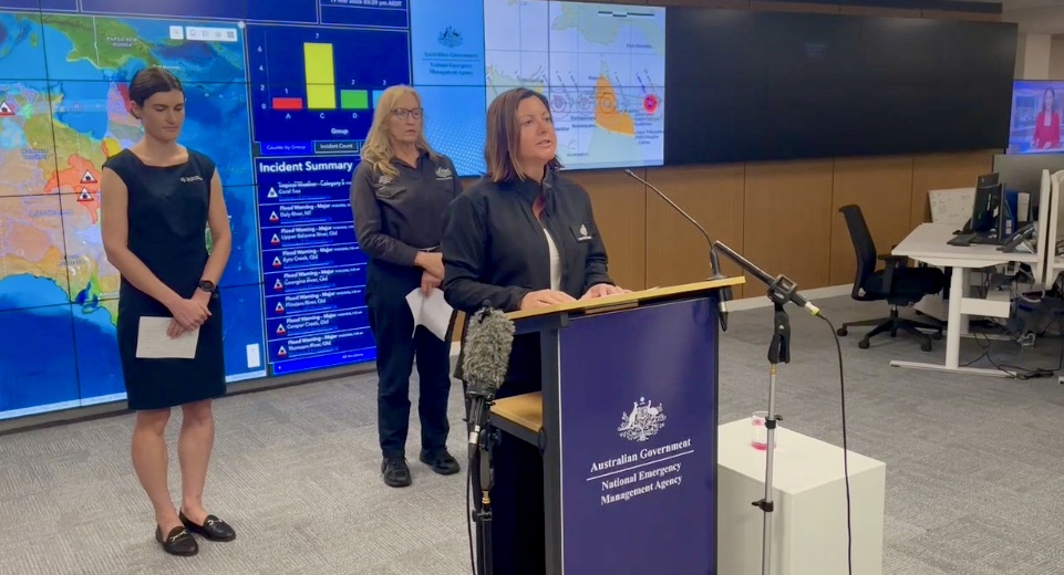 Federal Emergency Management Minister Kristy McBain gives an update on the Cyclone. (AAP)