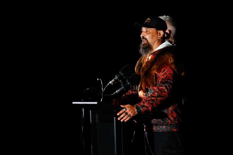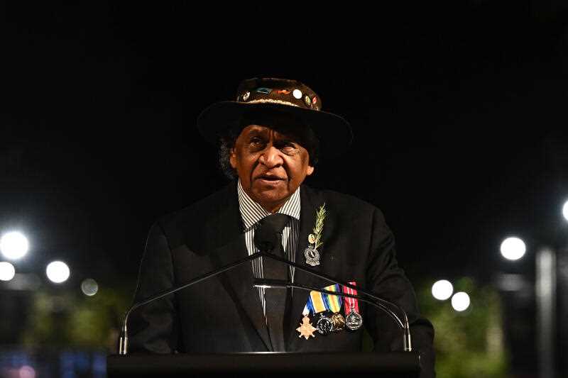 - Main Photo: Uncle Ray Minnecon delivers the Welcome to Country during the Anzac Day dawn service at the Cenotaph in Sydney. (AAP)