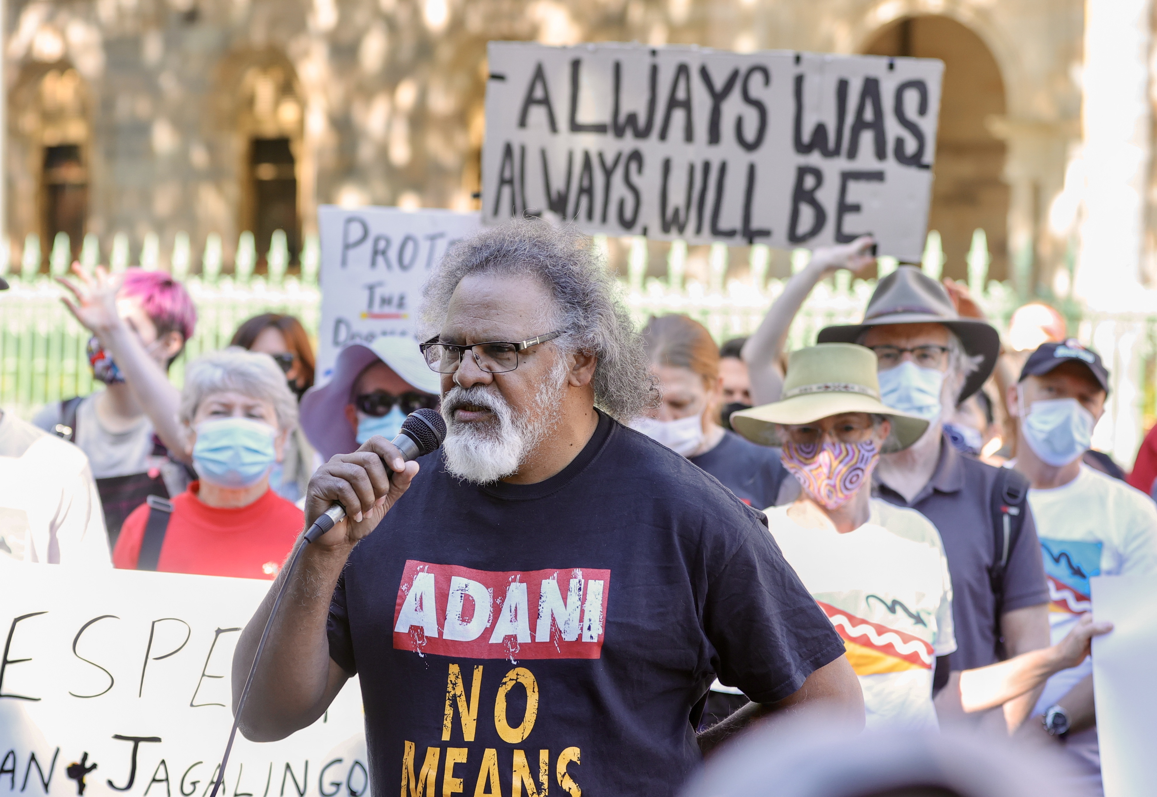 In a statement, Adani’s Australian subsidiary Bravus Mining and Resources said the Wangan and Jagalingou people at Waddananggu, which they described as an “unauthorised protest camp”, do not speak for the majority of Traditional Owners.