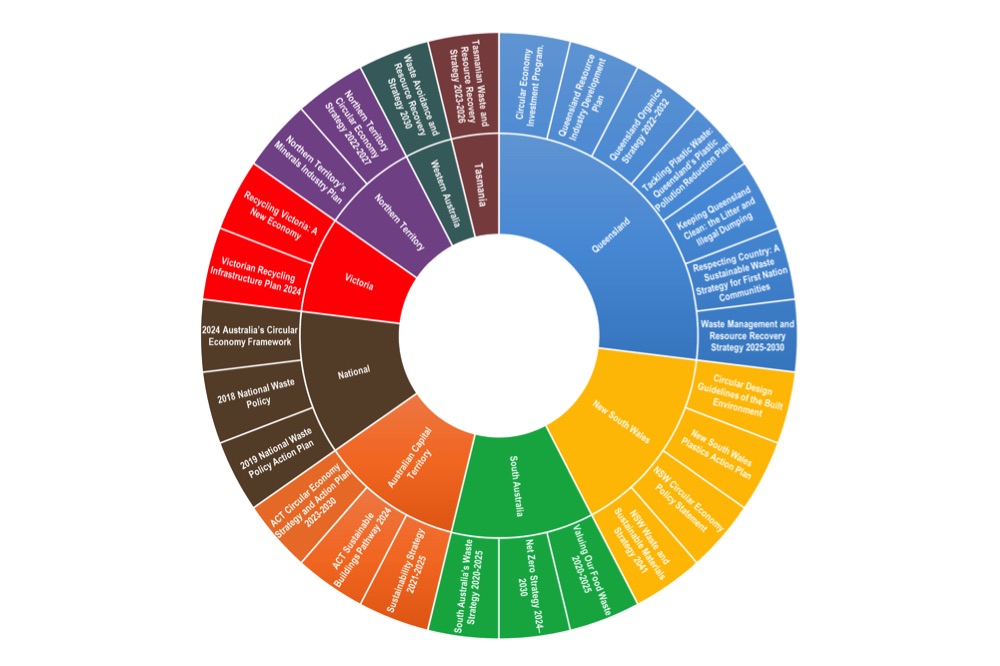 A visual summary of (national and state/territory-based) waste and circular economy policy documents.