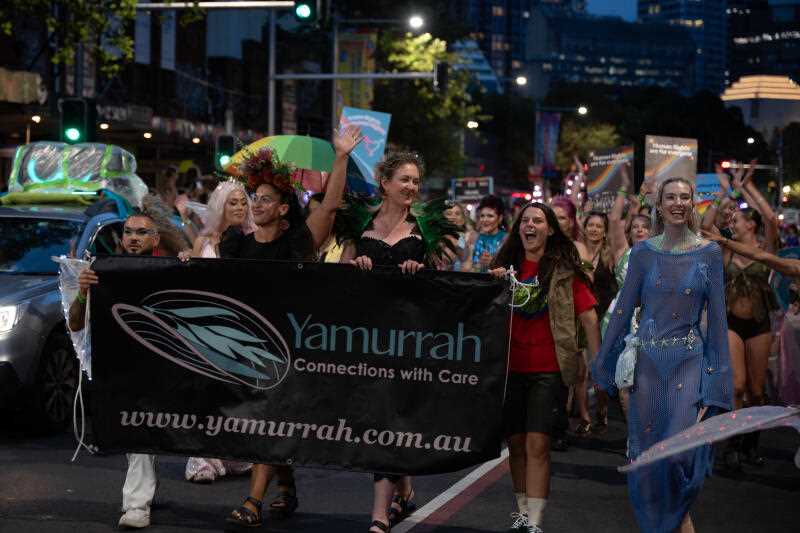 Among the 170 floats and 10,000-odd marchers at the Sydney Gay and Lesbian Mardi Gras on Saturday night was the work of Yamurrah, a group of Indigenous social workers, psychologists, trauma specialists, lawyers and more.