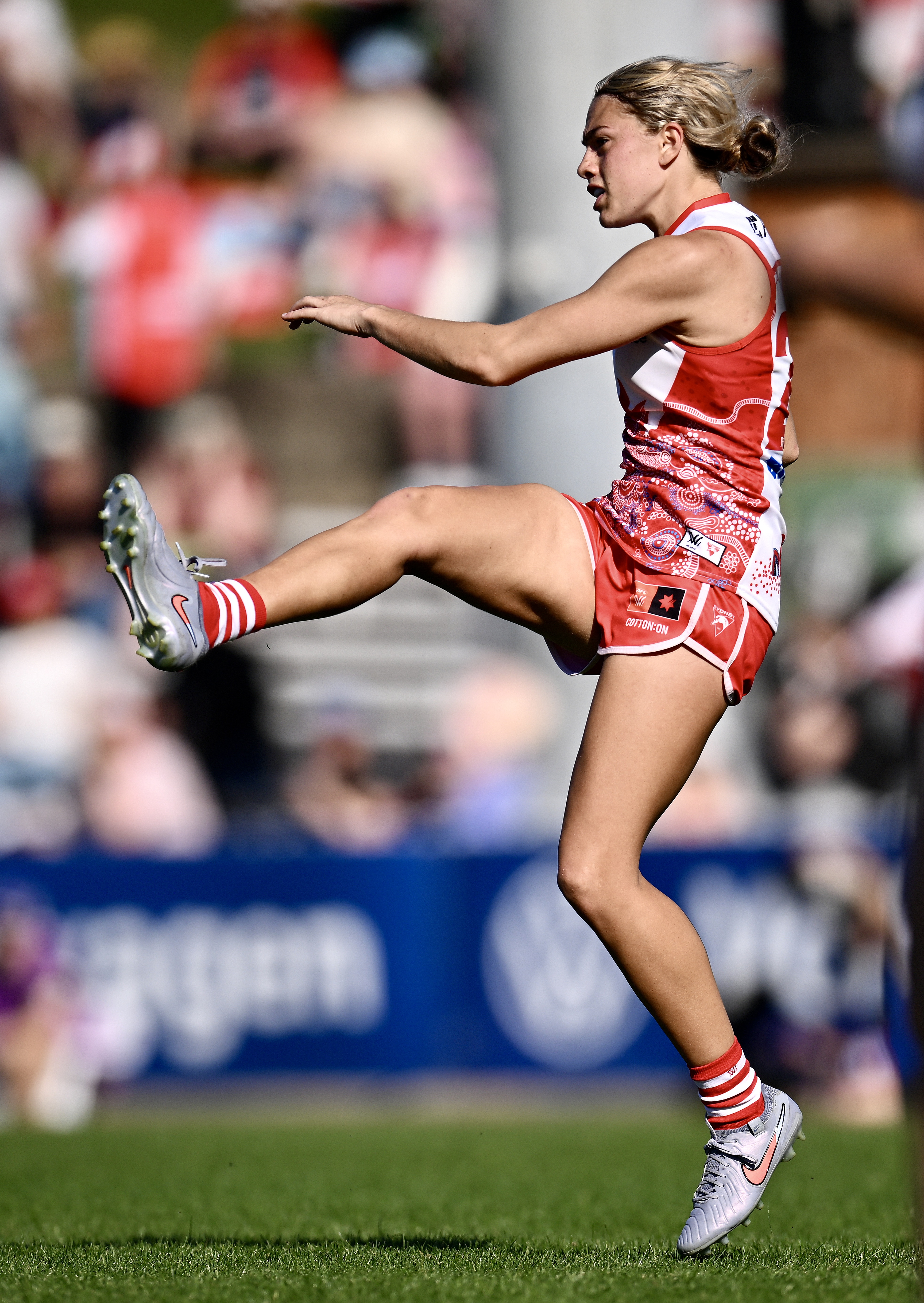 Exciting first-year player Fish, wearing AFL legend Lance ‘Buddy’ Franklin’s No.23 guernsey, had gifted Sydney a one-point lead at quarter-time with her first goal.