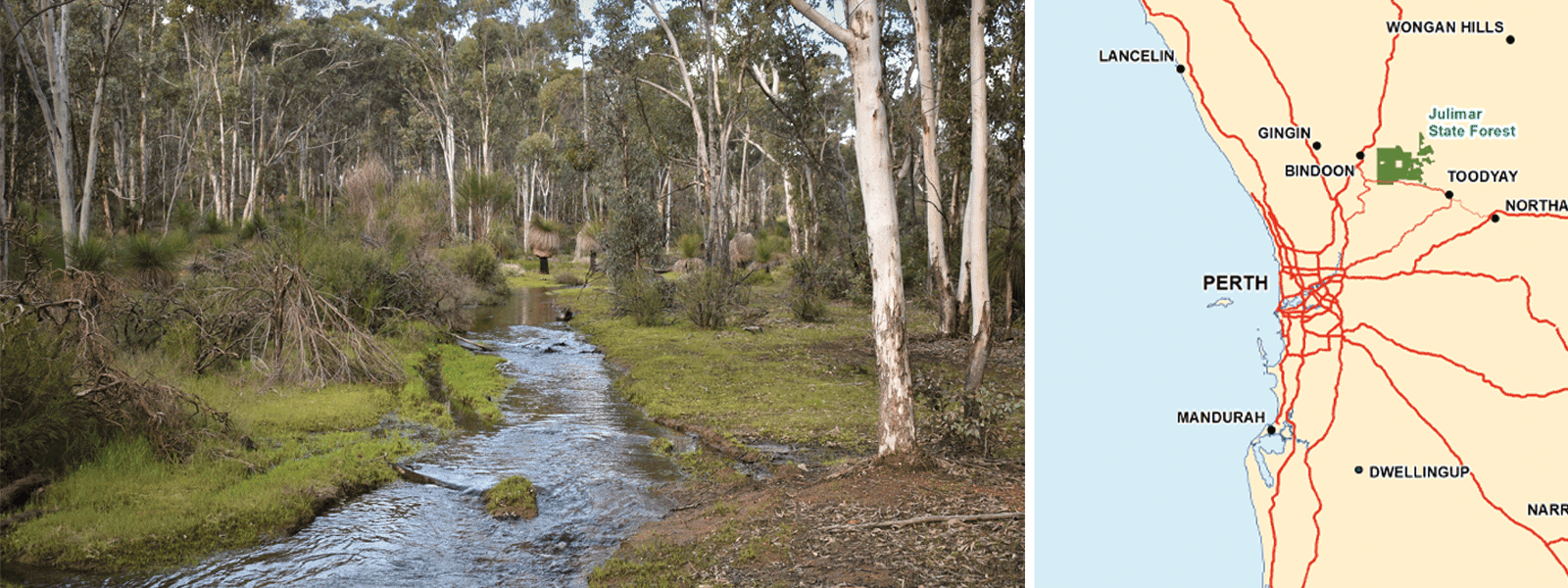 ‘Julimar State Forest has high cultural heritage and conservation values. These cultural heritage places include tributaries and at least one natural spring. Water places hold particular significance for Yued. Some are registered sites.