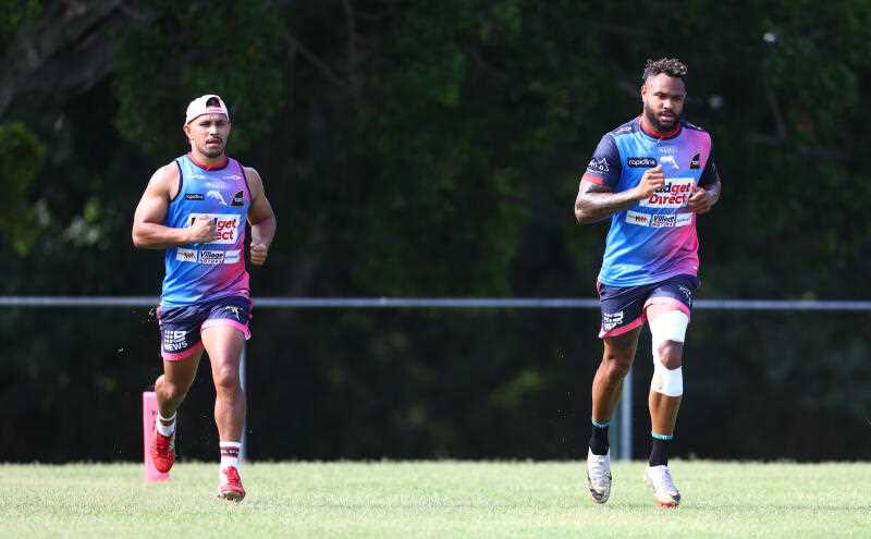 Trai Fuller (l) and Hamiso Tabuai-Fidow provide the Dolphins will strike. (AAP PHOTOS)