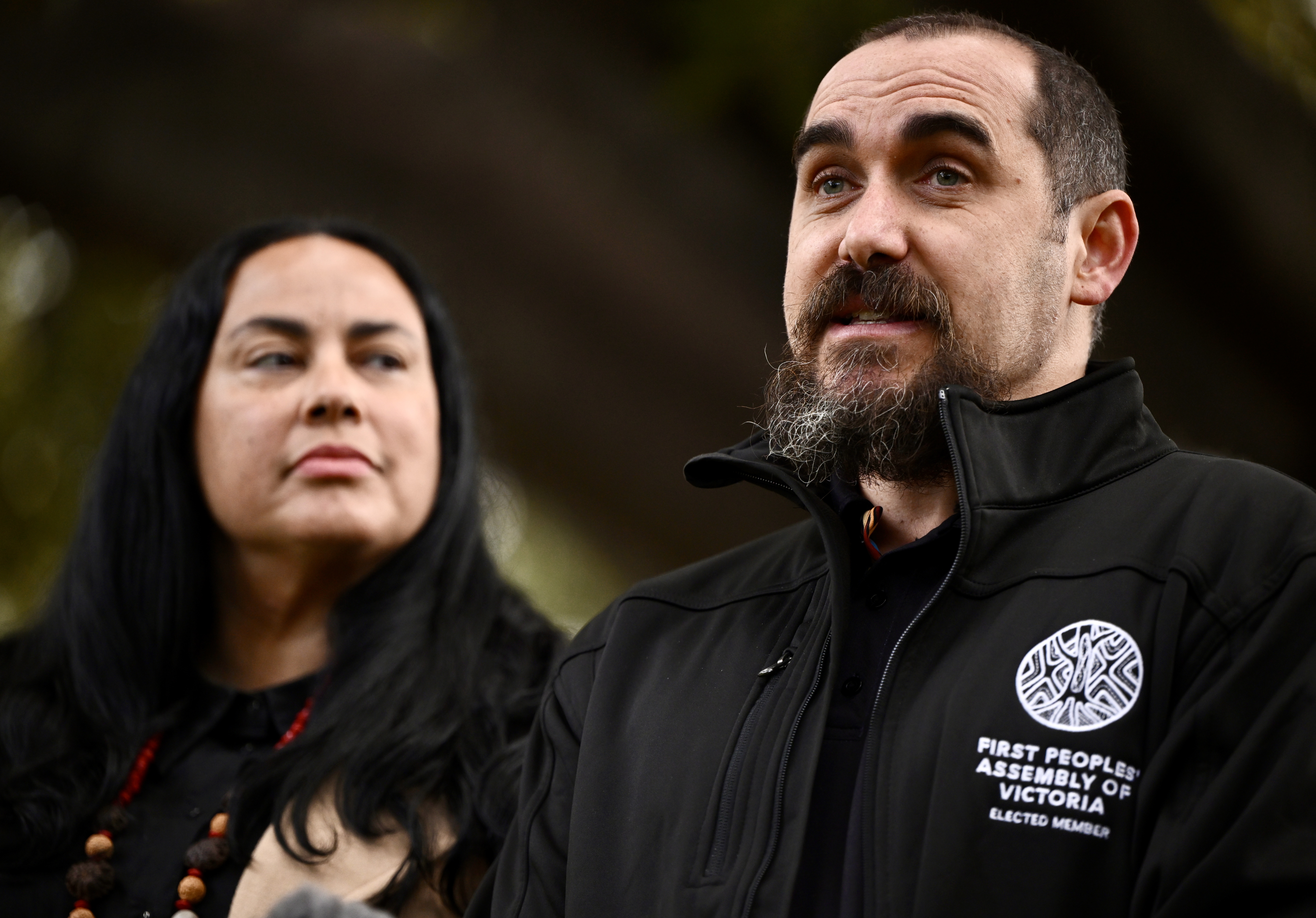 First Peoples’ Assembly of Victoria chairs Ngarra Murray and Rueben Berg helped steer the process. (Joel Carrett/AAP PHOTOS)