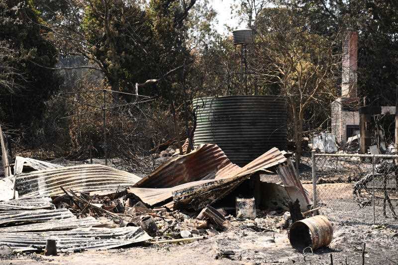 Damaged property in the bushfire affected town of Ruffy in Victoria.