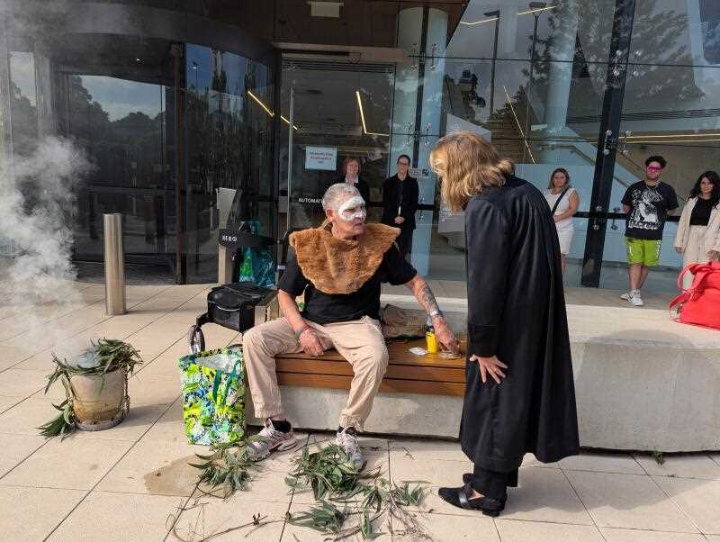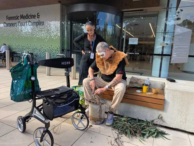 Mark Merriman conducts a smoking ceremony before inquest findings on his brother’s death in custody. (Miklos Bolza)