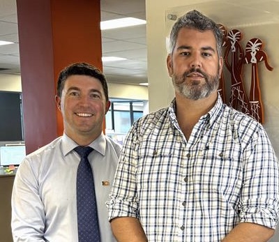 - Main photo: Minister for Lands, Planning and Environment Minister Joshua Burgoyne with new Aboriginal Areas Protection Authority Chief Executive Officer Robert Pocock.