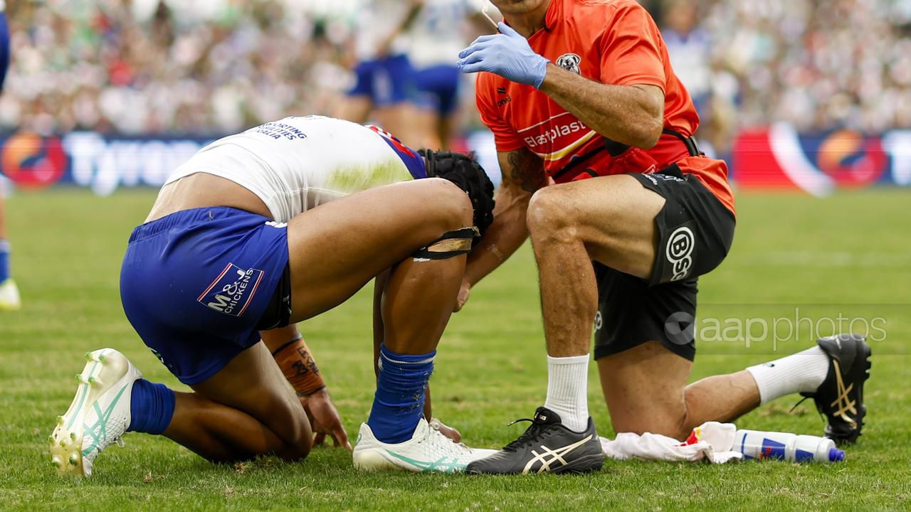 Canterbury’s afternoon went from bad to worse at Accor Stadium after Stephen Crichton was injured. (Mark Evans/AAP PHOTOS)