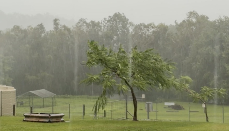 Howling winds and torrential rain lash Coen in far north Queensland.