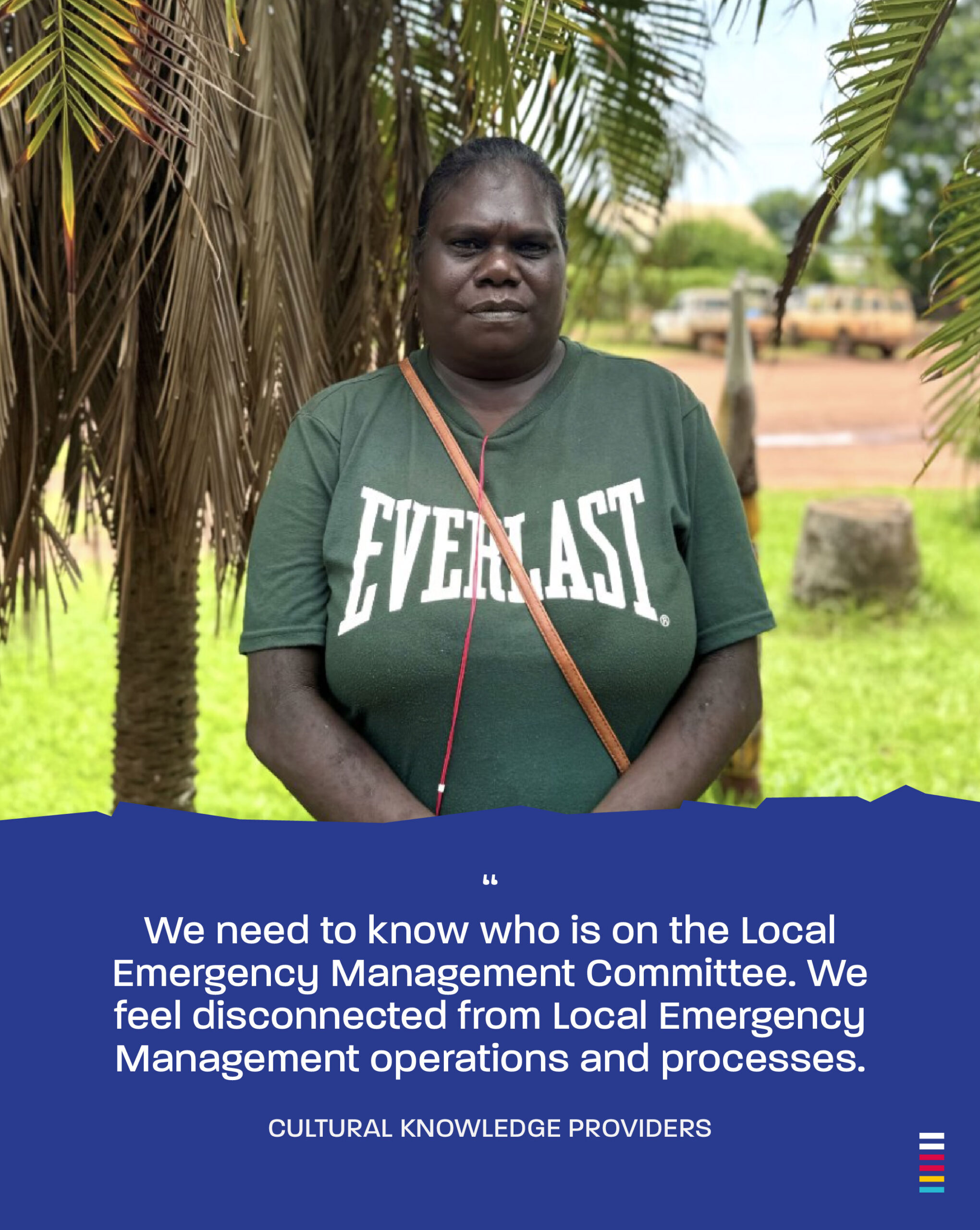 The findings confirm that high levels of community willingness and capacity to participate in — and be employed within — Local Emergency Management on the Tiwi Islands absolutely exist.
