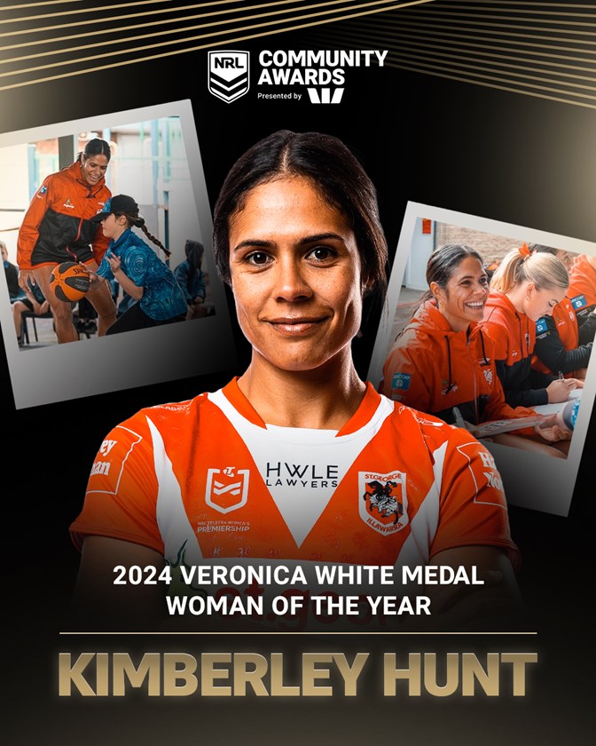 Kimberley Hunt won the award last year, a proud Wakaid woman from Badu Island, Hunt is an Indigenous All-Stars representative who has shown exceptional dedication to community service since joining the Dragons this season, particularly in supporting the local Indigenous community.
