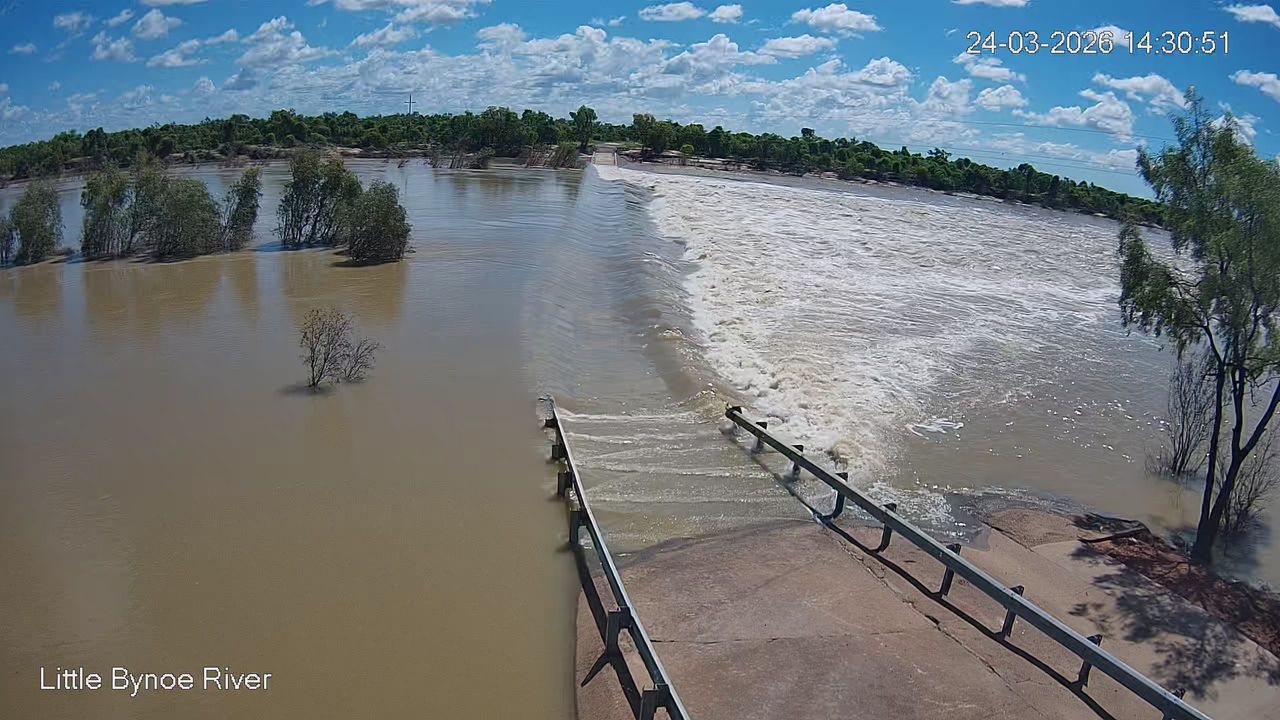 A sandbagged and already-saturated outback town is back on major flood alert as it continues a rollercoaster ride through consecutive storms.
