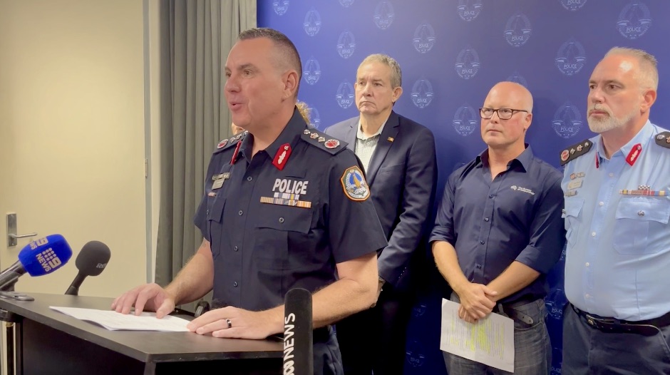 NT Police Commissioner Martin Dole deliverS a flood briefing. (Lloyd Jones AAP)